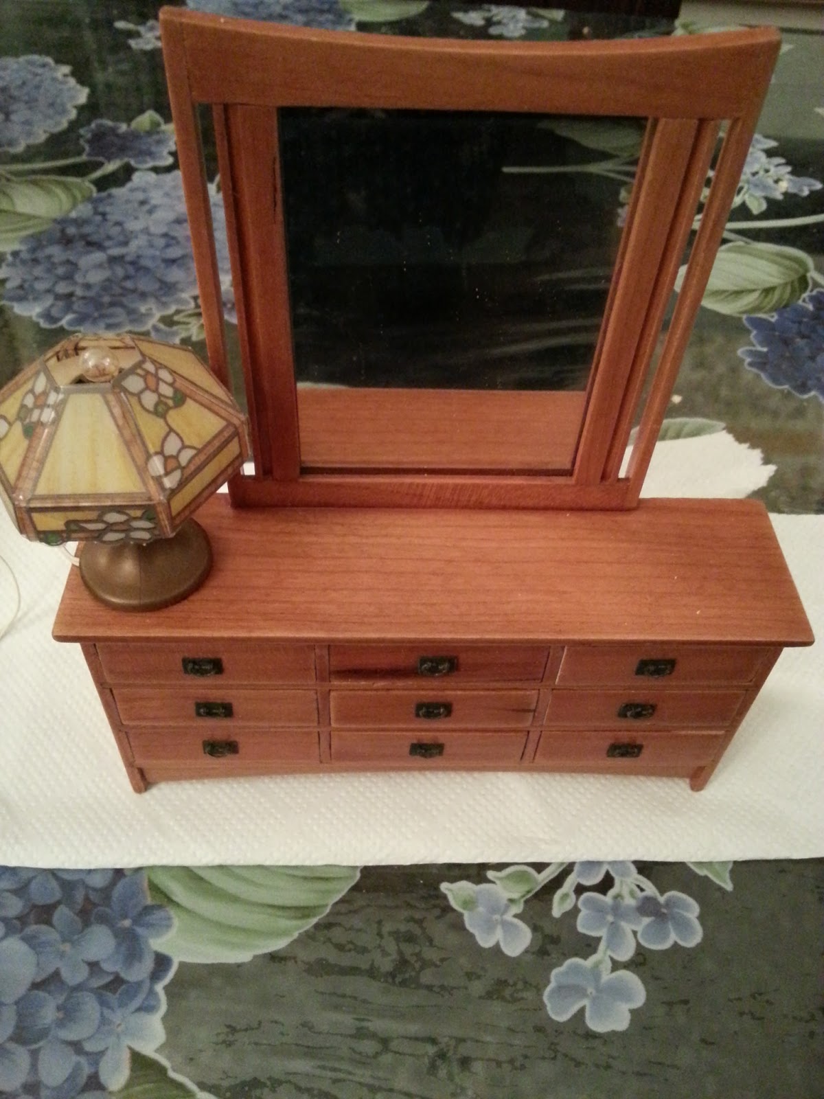 a cui ho aggiunto una lampada Tiffany che mi sembrava adatta al mobiletto...per l'ulteriore arredamento e il riempimento dei ben 9 cassetti.... a domani!!