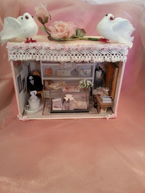 ho pensato di realizzare una roombox che rappresenti "il negozio degli sposi" ma un po' particolare...in quanto una coppia può trovare tutto ciò che le interessa senza rivolgersi da altre parti...