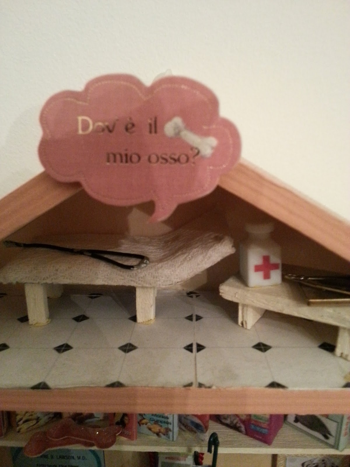 e la matita con il foglio degli appuntamenti giornalieri, le diverse confezioni di farmaci e...il quadro con la laurea da veterinario appesa alla parete e che non può mancare!