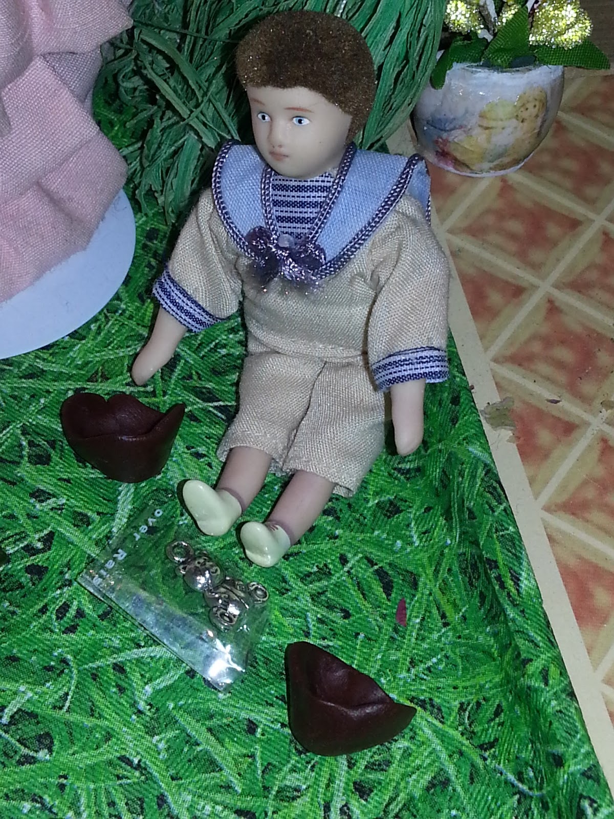 Seduta sulla panchina la sorellina osserva la scena con in mano il cestino e il coniglietto che le ha regalato Doortje e che non lascia neppure un attimo per paura che suo fratello glielo possa prendere!