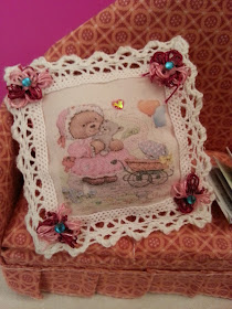 Ed infine mi sono divertita a realizzare un divano utilizzando una spugna. Suggerimento che dava Susanna Z  nel suo blog e con cui ho provato anch'io a divertirmi a fare. ( Grazie Susanna!)