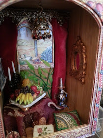 11. How exotic, I think of fairytales. I love the fruit dish and the water pipe. It is a very very beautiful room box, you have done a fantastic job here.