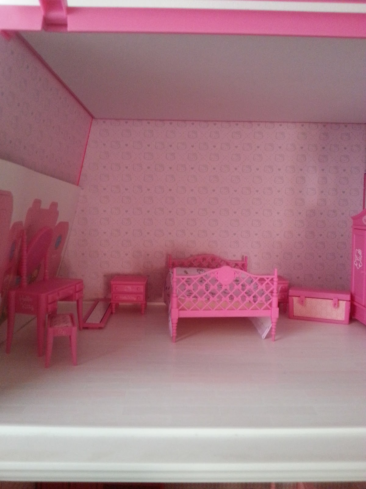 alcuni mesi fa mi è arrivato dal corriere una casa che avevo ordinatoe che è dedicata a Hello Kitty. In realtà io non sono una vera fans di questa gattina, benché sia deliziosa, ma ho acquistato la casa perché attirata dal suo colore rosa shocking che è uno dei miei colori preferiti. L'arredamento è però con mobili in plastica e perciò dovrò dedicarmi sia ad un restauro di qualche sua mobilia, in modo da renderla meno "plasticosa" e sia alla realizzazione di nuovi arredi. Il progetto però mi sembra divertente e un po' di tempo in più con l'avvicinarsi delle vacanze dovrei trovarlo. La mia idea è anche quella di inserire i vari doni che ho ricevuto da alcune amiche blogger e che penso trovino una loro giusta localizzazione e ben più visibile.