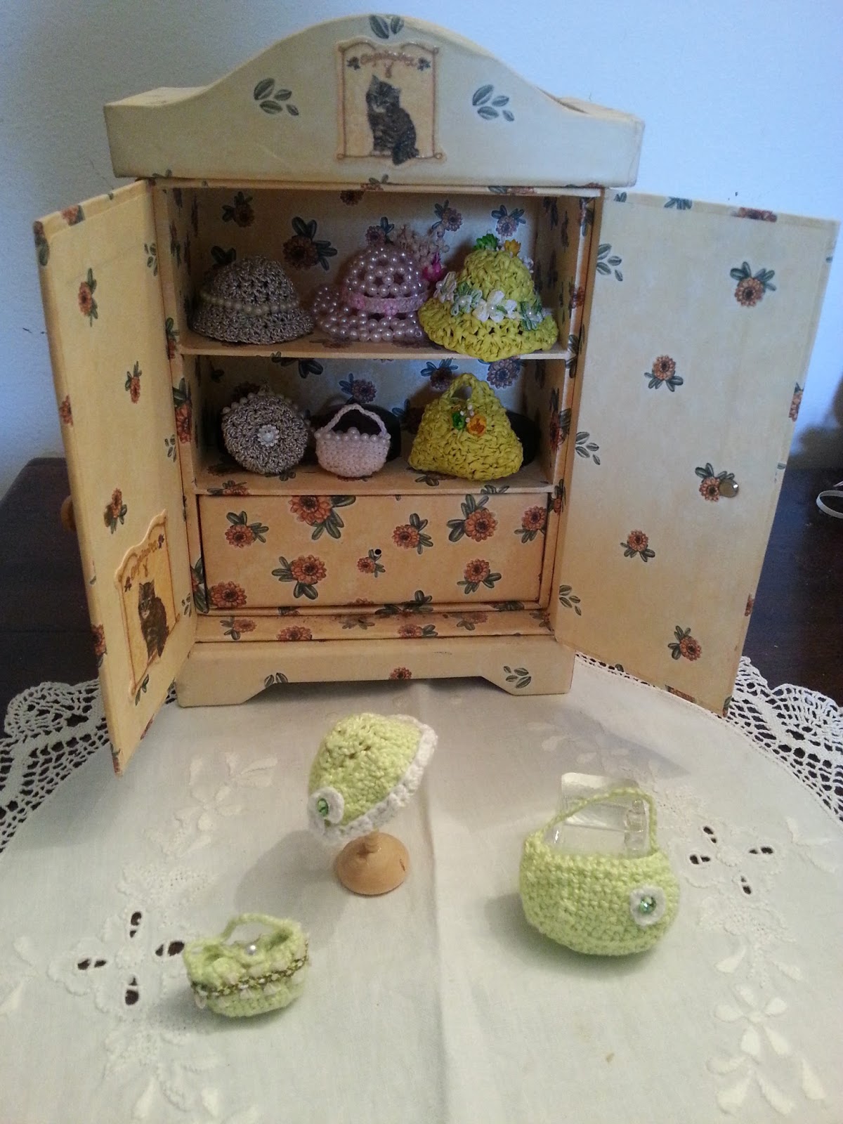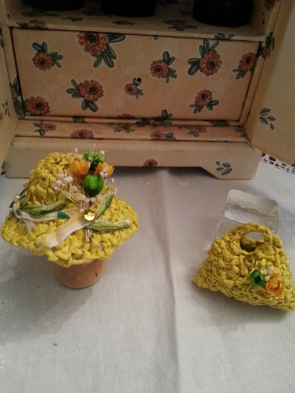Here I re-opened my mini closet and then I added these sets of matching hat and purse to use in these days of summer