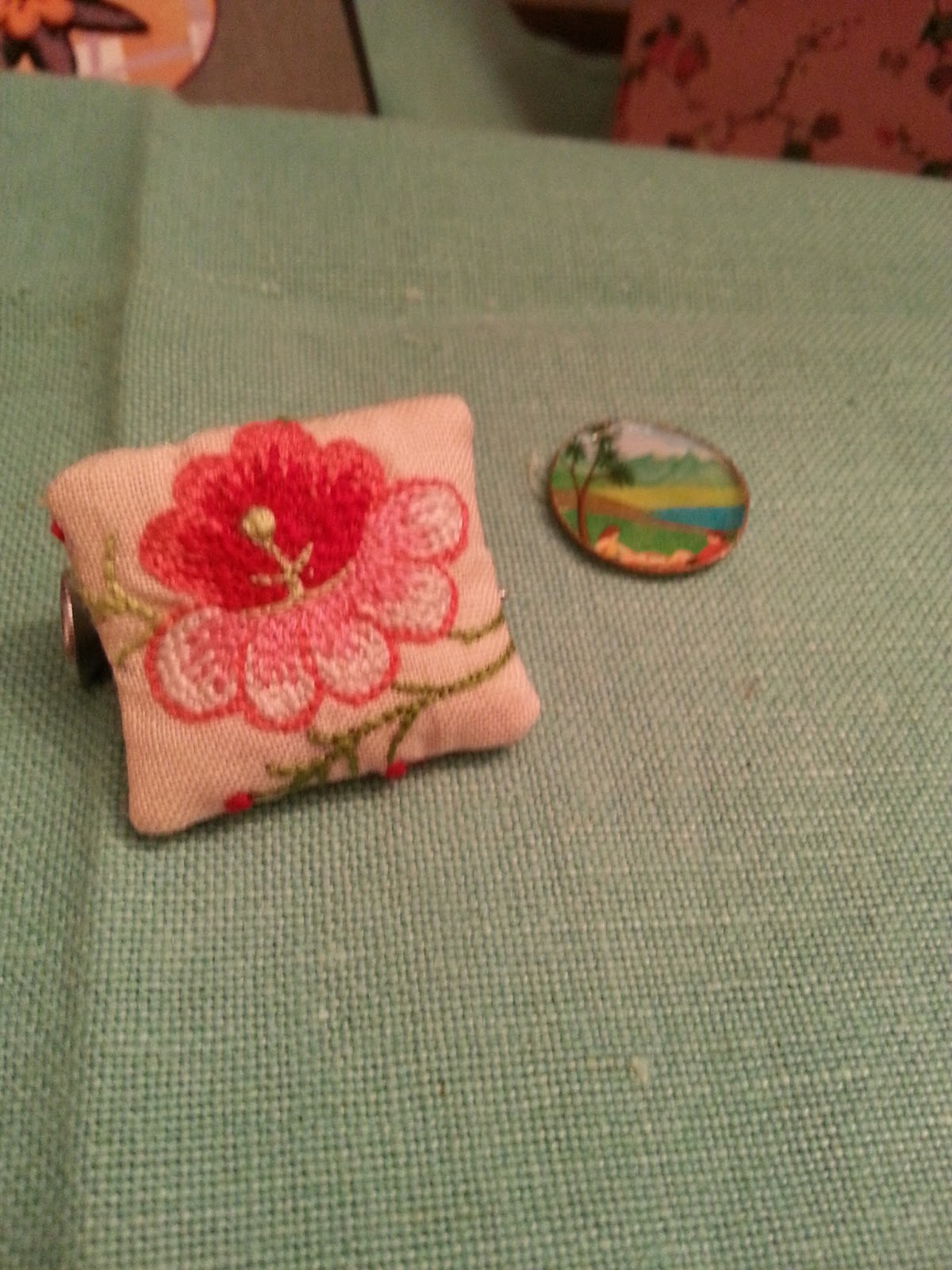 e per terminare uno stupendo cuscino ed un altrettanto delizioso piattino dipinto, ricavato dal fondo di un tappo di bottiglia