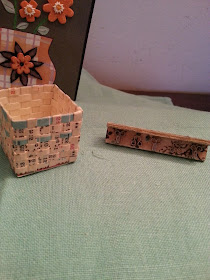 Quindi ha realizzato un cestino tutto intrecciato con ritagli di carta ed è uno stupendo lavoro e di molta pazienza ed uno attaccapanni realizzato con i ganci che si usano in merceria