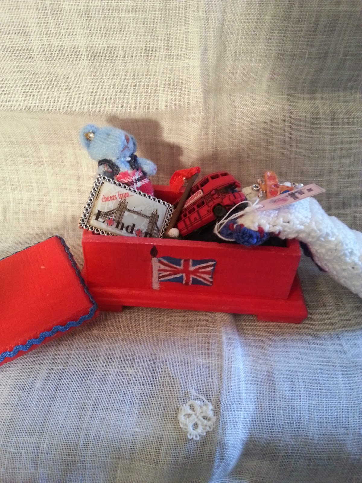 today I'll post pictures of the chests that I made for Miniaturitalia thinking of the children's room. In them I tried to keep some fixed points on the objects to be included, and so here I made for each chest with a crocheted cover the edge of the same shade as the furniture and so a book and a pillow trying to stay on with images of the chest, all painted by me.